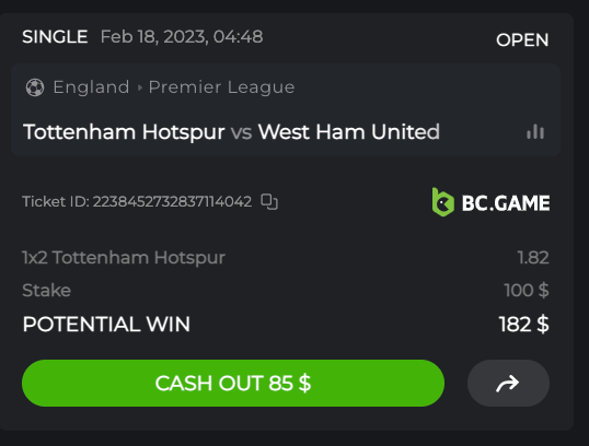 1. https://bc.game/sports?bt-path=%2F%3FbtBookingCode%3D9826C6B Ticket ID: 2238452732837114042