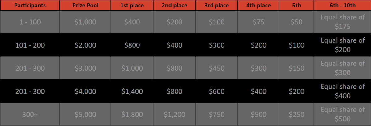 $5k Prestige DOUBLE Challenge #103 DURATION: 25th AUG - 1st SEP 12:30 pm UTC Greetings VIPs! We're ushering in another week of exclusive festivities at BC.GAME, meticulously curated for esteemed players like you. This week's highlight is a riveting tournament centered around our latest in-house sensation, DOUBLE, emphasizing consecutive bets. The mechanics are clear-cut, and the rewards are nothing short of spectacular. Dive into the event details and peruse the terms and conditions outlined below: What's the Challenge? Participants must win as many consecutive bets as possible by betting on either one of RED/BLACK on in-house DOUBLE game. Consecutive bets must be of the same color to validate the entry. Rank will be determined by the largest amount of consecutive bets, the longest sequence will be in 1st place and successively. In the event of a tie, the advantage will be given to the highest average bet in dollars. In the event of a tie again, the first bet placed will have the advantage. How to Enter To enter, copy the link of the bet you'd like to submit. Once you've copied it, paste it as a reply to this thread like so: Link: https://bc.game/#/sd/11GPPRIL9ZI97R In the same post, upload a screenshot of your win by clicking the game ID WITH VIEW IN USD mode ENABLED (accessible at the bottom of dropdown menu for your wallet up top. This way, we can ensure that your bet indeed met the minimum requirement at the time of placing it: Link: https://bc.game/#/sd/11GPPRIL9ZI97R Minimum VIP Tier Minimum VIP 4 with phone verified will be eligible! Minimum Bets Win at least 5 consecutive bets on same colour to qualify. Minimum Bet Size $0.20 USD equivalent Eligible Coins All cryptocurrencies are eligible (excepting JB and BCL) Available Prizes GENERAL Rules Please combine all of your hits together in a SINGLE post. Edit your existing post for additional hits, don't create a new post. Each eligible entry must have the Bet Slip URL, failure to include it will disqualify participation in the event. Bet Slip image is not mandatory. Changing seed in between bets is not allowed. This will lead to disqualify from event. Bets must be posted within 24 hours of placing bet in order to keep things fair for everyone. Bets must be made during the specified time window stated above. This thread will lock automatically when the time period is over. One (1) entry per household. Anyone found attempting to win multiple prizes will be disqualified from this challenge as well as all future challenges. Failure to follow instructions will result in your submission being null and void. By entering this challenge, you acknowledge that BC.Game has the final decision on results and placement. Payouts will be distributed after the event is finished. Please note that it could take anywhere from 48 hours to 7 days after the completion of the event.