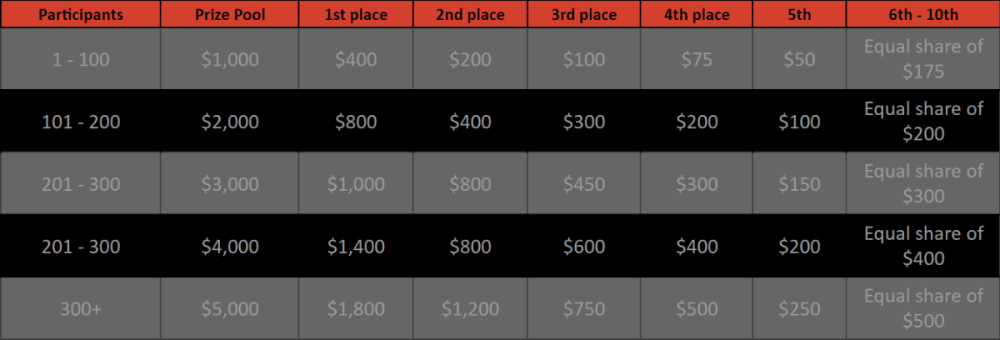 $5k Prestige Ultimate Dice Challenge #104 DURATION: 1st SEP - 8th SEP 13:20 pm UTC Greetings, BC.Game enthusiasts! The thrill of rolling the dice just got even more exhilarating! Dive into the "$5k Prestige Ultimate Dice Challenge #104", a spectacular arena where precision meets luck, and stand a chance to bask in glory and rewards. Running from 1st September to 8th September, this is your golden opportunity to showcase your prowess in Ultimate Dice and share a grand prize pool worth $5,000! Whether you're a seasoned player or just looking for a new challenge, this week promises unforgettable excitement and potentially handsome rewards. So, gear up, aim for those multipliers, and may fortune favor your rolls! Let's roll to victory! What's the Challenge? Complete as many of the following 20 multipliers on our in-house Ultimate Dice. Must be a winning bet. | 11x | 22x | 33x | 44x | 55x | 66x | 76.7441x | 87.6106x | 99x | 150x | 220x | 300x | 396x | 550x | 825x | 900x | 1100x | 2475x | 3300x | 4950x | Each multiplier you hit above counts as 1 point (Maximum 1 point for each multiplier). If there is a tie, the player with the higher average bet amount (in USD) shall be the winner. How to Enter To enter, copy the link of the bet you'd like to submit. Once you've copied it, paste it as a reply to this thread like so: Link: https://bc.game/#/sd/11H78LROL96057 In the same post, upload a screenshot of your win by clicking the game ID WITH VIEW IN USD mode ENABLED (accessible at the bottom of dropdown menu for your wallet up top. This way, we can ensure that your bet indeed met the minimum requirement at the time of placing it: Link: https://bc.game/#/sd/11H78LROL96057 Minimum VIP Minimum VIP 4 with phone verified will be eligible! Minimum Payouts Hit at least 4 payouts to qualify Minimum Bet Size $0.15 USD equivalent Eligible Coins All cryptocurrencies are eligible (excepting JB, and BCL) Available Prizes GENERAL TERMS Please combine all of your hits together in a SINGLE post. Edit your existing post for additional hits, don't create a new post. Bets must be posted within 24 hours of placing bet in order to keep things fair for everyone. Bets must be made during the specified time window stated above. This thread will lock automatically when the time period is over. One (1) entry per household. Anyone found attempting to win multiple prizes will be disqualified from this challenge as well as all future challenges. Failure to follow instructions will result in your submission being null and void. By entering this challenge, you acknowledge that BC.Game has the final decision on results and placement. Payouts will be distributed after the event is finished. Please note that it could take anywhere between 24 hours to 7 days after the completion of the event.