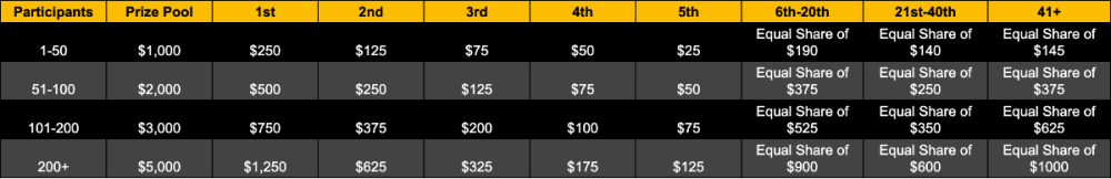 $5k Prestige Classic Dice Challenge #96 DURATION: 7th JULY - 14th JULY 12:30 pm UTC Welcome VIPs! Get ready to seize the moment and embrace the thrill! Brace yourselves for the electrifying Classic Dice challenge! Your mission? Conquer 25 precise target payouts and unite as a formidable force, amassing a colossal 1 point (with a maximum of 16 points)! But that's not all – the prize pool of $5,000 awaits those who dare to take part in this extraordinary and audacious event! Prepare yourselves, for life is a daring adventure, filled with untold possibilities. It's time to cast away doubt and hesitation, and let the dice guide your destiny! Let the games begin! What's the Challenge? Complete as many of the following 25 payouts on our in-house Classic Dice. Must be a winning bet. | 5x | 15x | 25x | 33x | 44x | 55x | 66x | 75x | 90x | 99x | 100x | 150x | 180x | 220x | 300x | 330x | 396x | 450x | 550x | 825x | 900x | 1100x | 2475x | 3300x | 4950x | Each payout you hit above counts as 1 point (Maximum 1 point for each payout). If there is a tie, the player with the higher average bet amount (in USD) shall be the winner. How to Enter To enter, copy the link of the bet you'd like to submit. Once you've copied it, paste it as a reply to this thread like so: Link: https://bc.game/#/sd/11DC5WGXAYR1G3 In the same post, upload a screenshot of your win by clicking the game ID WITH VIEW IN USD mode ENABLED (accessible at the bottom of dropdown menu for your wallet up top. This way, we can ensure that your bet indeed met the minimum requirement at the time of placing it: Link: https://bc.game/#/sd/11DC5WGXAYR1G3 Minimum VIP Minimum VIP 4 with phone verified will be eligible! Eligibility to Win Prize Win at least 4 payouts to qualify. Minimum Bet Size $0.10 USD equivalent Eligible Coins All cryptocurrencies are eligible (excepting JB) Available Prizes GENERAL TERMS Please combine all of your hits together in a SINGLE post. Edit your existing post for additional hits, don't create a new post. Each eligible entry must have the Bet Slip URL, failure to include it will disqualify participation in the event. Bet Slip image is not mandatory. Bets must be posted within 24 hours of placing bet in order to keep things fair for everyone. Bets must be made during the specified time window stated above. This thread will lock automatically when the time period is over. One (1) entry per household. Anyone found attempting to win multiple prizes will be disqualified from this challenge as well as all future challenges. Failure to follow instructions will result in your submission being null and void. By entering this challenge, you acknowledge that BC.Game has the final decision on results and placement. Payouts will be distributed after the event is finished. Please note that it could take anywhere between 24 hours to 7 days after the completion of the event.