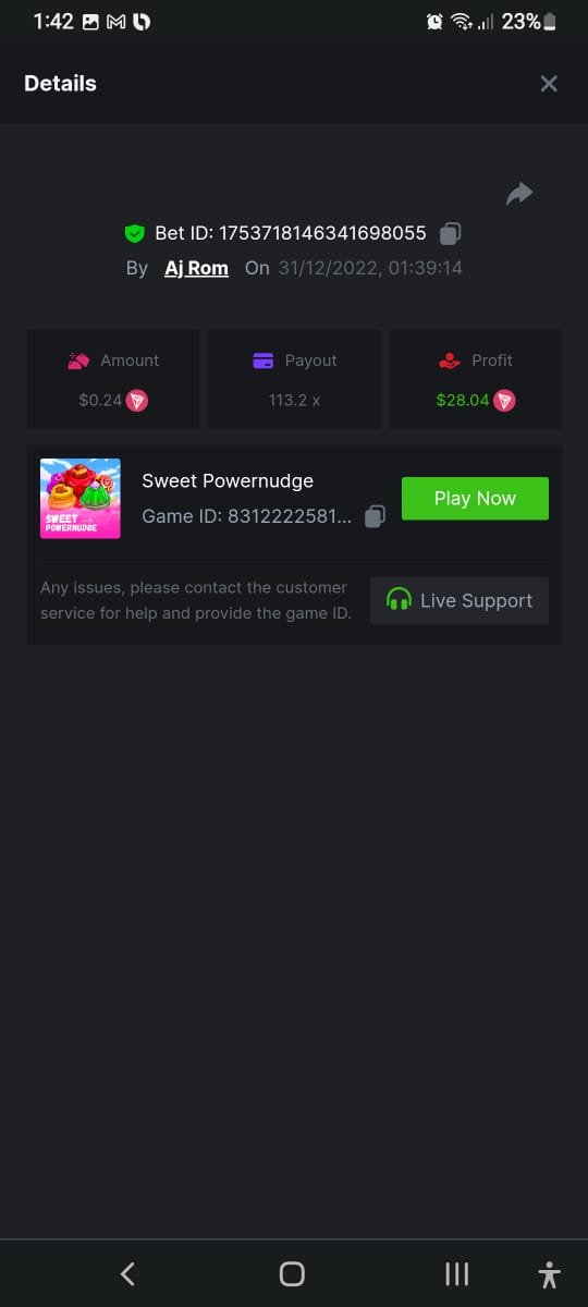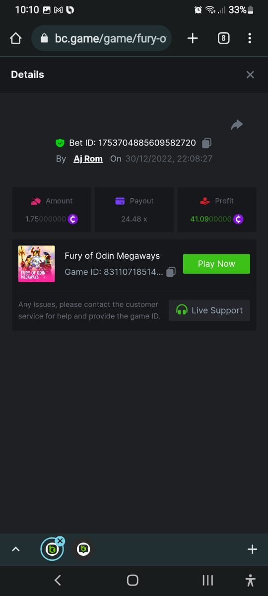 Sorry but I cannot recover the share link of lucky score, I only have the screenshot.... https://bc.game/#/sd/10Y8IDZJRSDJBN https://bc.game/#/sd/10Y5XWIGT1OI6R https://bc.game/#/sd/10Y5W1MI96Z3MB https://bc.game/#/sd/10Y5TH8IEPF7YR -