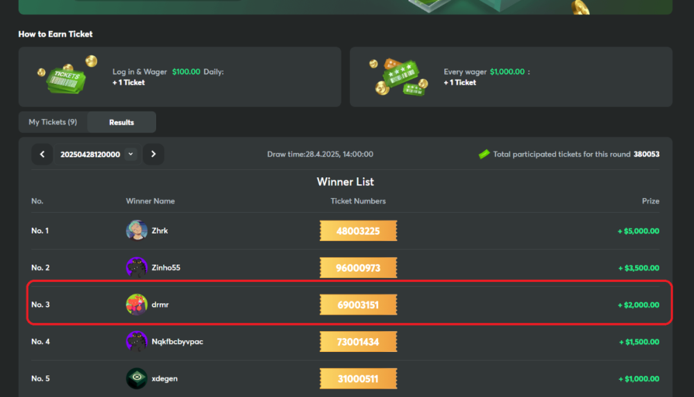 3. Hello Bc.game i realy need a Statement of you how this Guy is: -Account Level 37 -Wager Total: 713$ -has Favorite Games played only 1 shown with 0 wager on it! -Won the Weekly Raffle 2000$ as 3RD Place -Joined 10.1.2025 What is going on here??? i never Won the Raffle even with almost 1Mio Wager and you going to tell me he Won with 700$ Total Wager? i need a Statement Bc.game all looks like you forgot to set Hide my Stats!