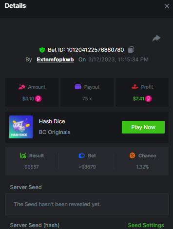 $1,500 Exclusive Weekend Hash Dice Prestige Challenge #76