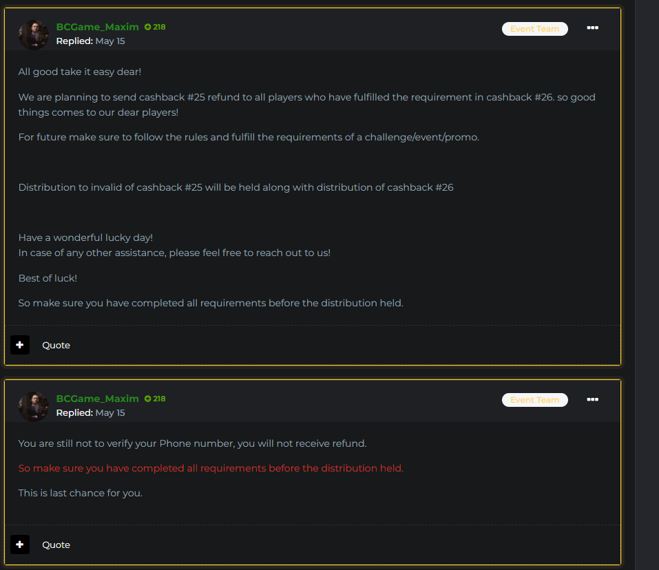 STOP IGNORING MY MESSAGES! YOU SAID THAT YOU WILL GIVE THE CASHBACK FOR SPORTS GUARANTEE #25 ALONG WITH SPORTS GUARANTEE #26 REFUND SO I ACCOMPLISH AND COMPLETE ALL THE REQUIREMENTS WITHIN 24 HOURS SO WHERE IS MY CASHBACK NOW? RETURN MY MONEY NOW AND STOP IGNORING MY MESSAGES!!!