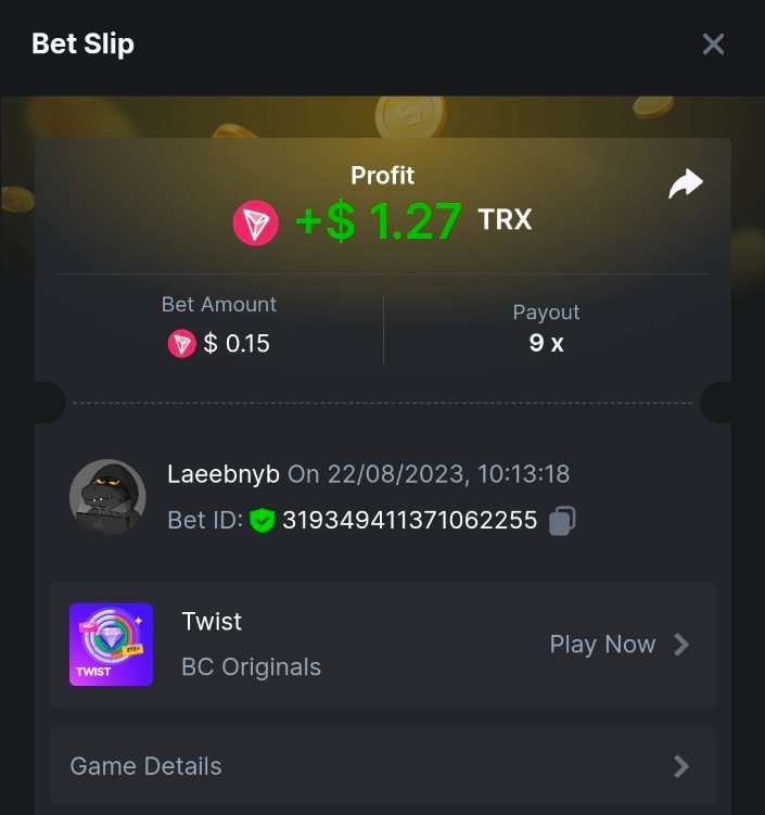 8. Bet ID : 98991557290071333 https://bc.game/#/sd/11AB0EVCK37UVN