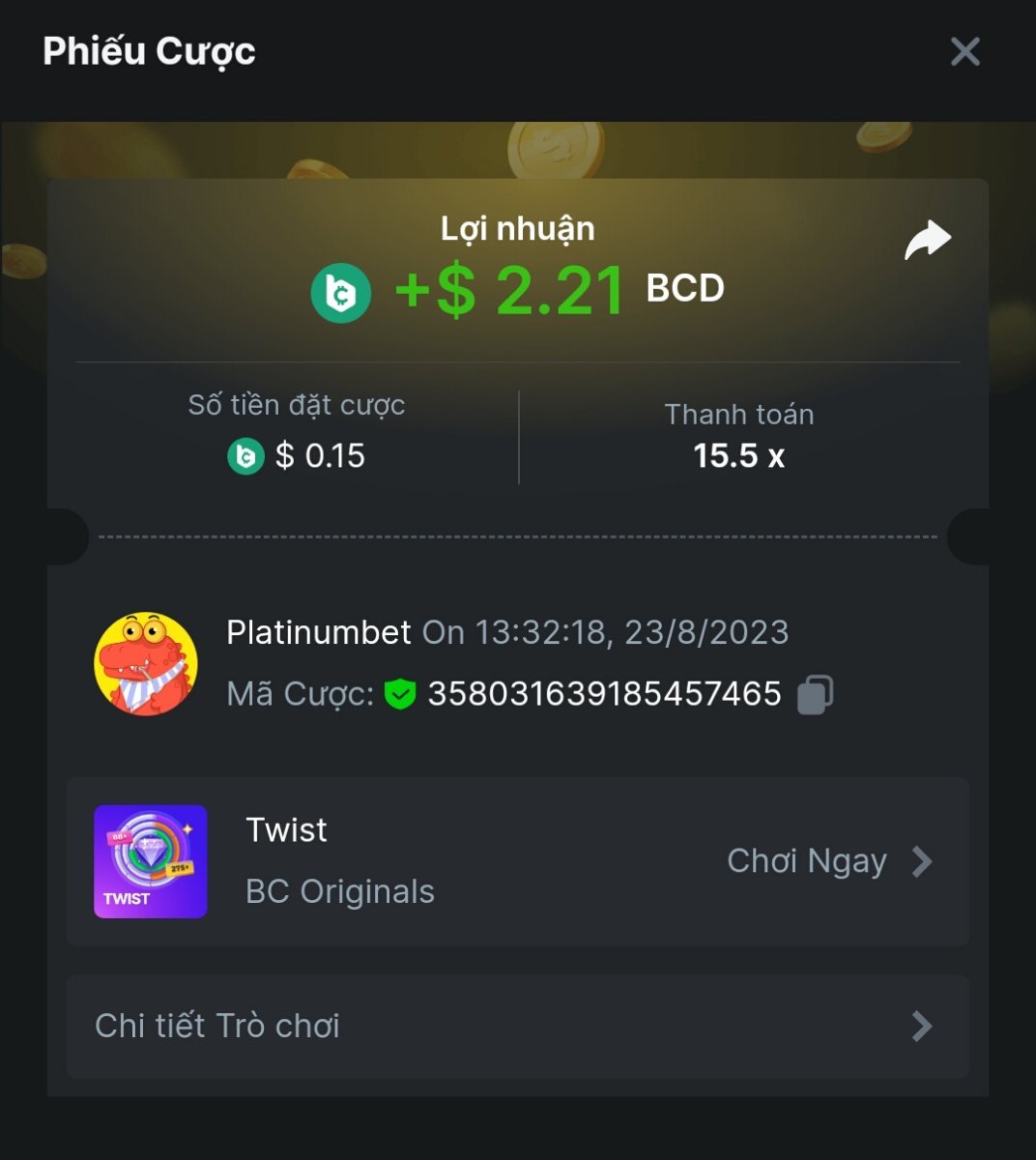 Platinumbet replied to BCGame_Maxim's topic in Past Challenges
