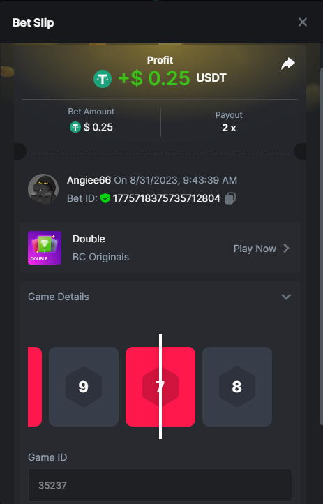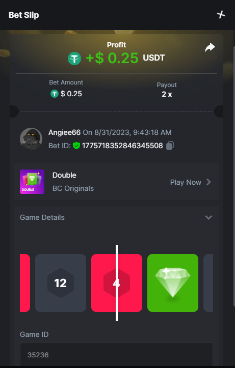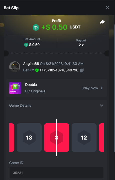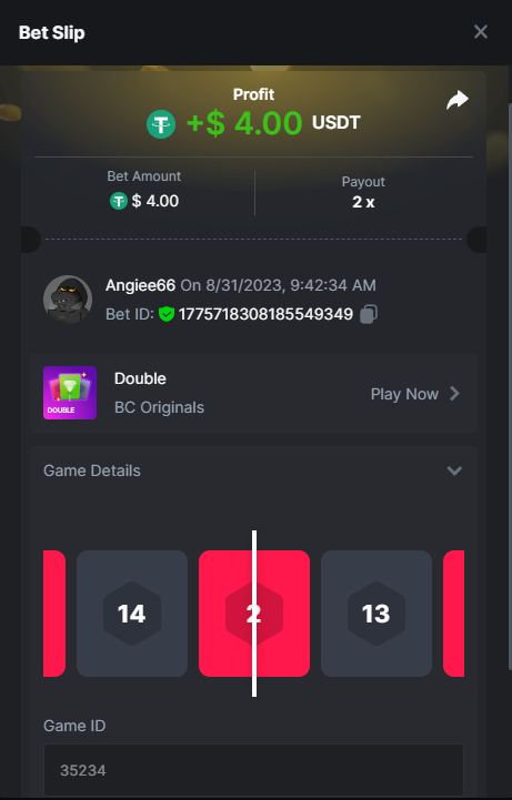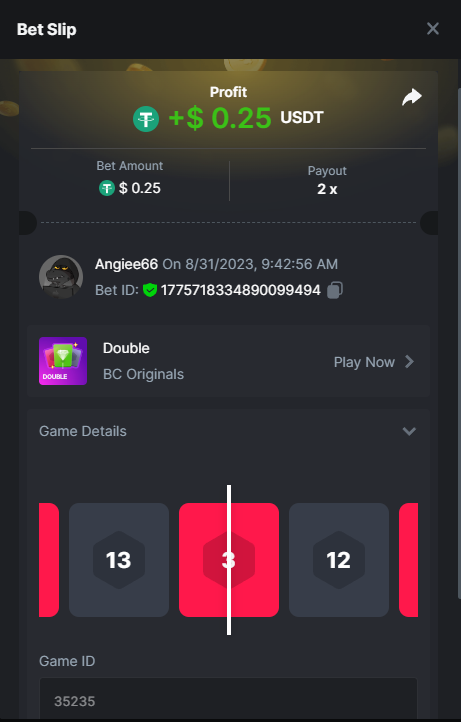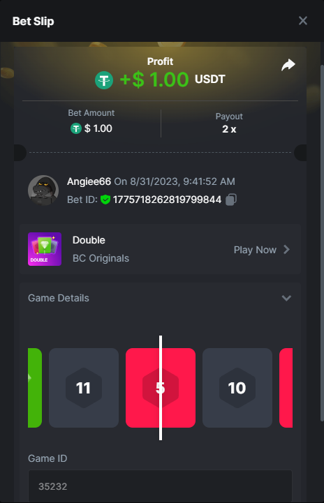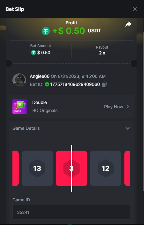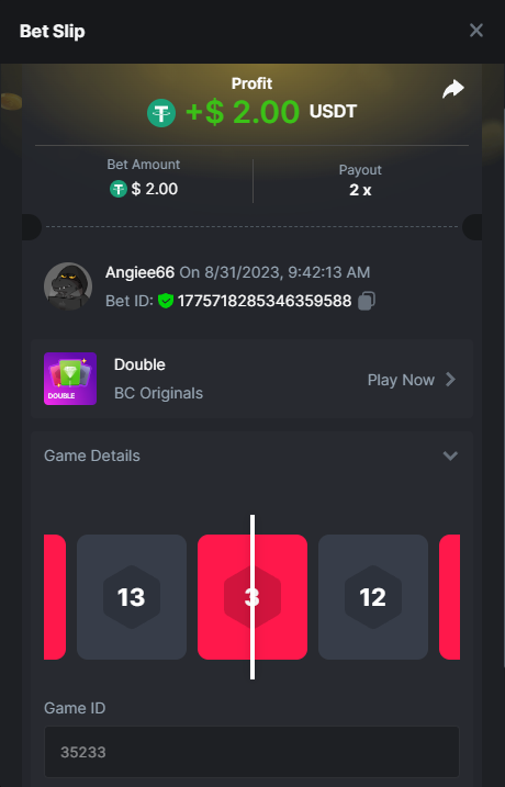3. 12* Consecutive Bets on same color: Game Id: 35230 to Game Id: 35241 Game Id: 35230: https://bc.game/#/sd/11H3WD07T5A48J Game Id: 35231: https://bc.game/#/sd/11H3WDHGARE797 Game Id: 35232: https://bc.game/#/sd/11H3WDVEWXA7EB Game Id: 35233: https://bc.game/#/sd/11H3WE8GKWTM3B Game Id: 35234: https://bc.game/#/sd/11H3WEQHZ17GMR Game Id: 35235: https://bc.game/#/sd/11H3WEXMHDYKVV Game Id: 35236: https://bc.game/#/sd/11H3WFGIGOX6IJ Game Id: 35237: https://bc.game/#/sd/11H3WFX8SJO3YV Game Id: 35238: https://bc.game/#/sd/11H3WG70JBRL8B Game Id: 35239: https://bc.game/#/sd/11H3WIE373WWS3 Game Id: 35240: https://bc.game/#/sd/11H3WHUN84F8ZF Game Id: 35241: https://bc.game/#/sd/11H3WHBEV58D1Z Note: There are few people who are changing the seed/placing multiple bet on single seed thats why they have like alot of consecutive bets, i havent not changed the seed as it is mentioned clearly in the challenge requirements