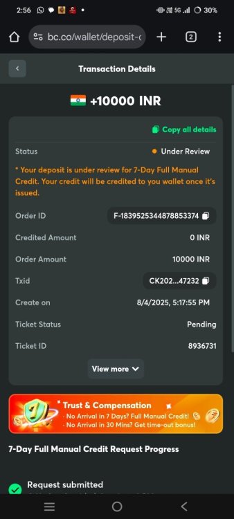 "7-Day Full Guarantee:If your deposit hasn’t arrived within 7 days of submission, the system will automatically issue full compensation."