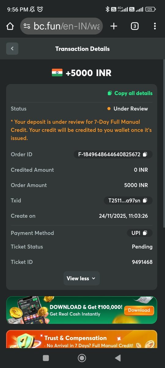 Payment 100% successful from bank side, all proofs attached multiple times, but today is December 16, 2025 and still ZERO credit – status stuck on "Under Review". No manual credit, no response to speedup request, support is completely silent.This is not my first issue, and definitely not isolated – on Forum, Trustpilot, Reddit, AskGamblers, Casino.Guru there are thousands of similar complaints: Deposits pending for weeks/months, funds disappear, support ignores everyone. Many users reporting ongoing merchant issues with fiat/UPI deposits, but BC.Game never resolves. Several are straight-up calling it a scam – they take your money but don't credit accounts.Now I'm filing a complaint on cybercrime.gov.in + reporting to RBI Ombudsman. All affected users with similar issues, please join and file complaints together for faster action!BC.Game Admins/Mods/Support: Credit my deposit or refund immediately, otherwise this exposure will get even bigger!