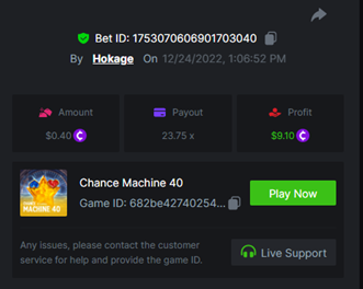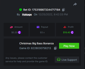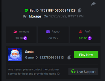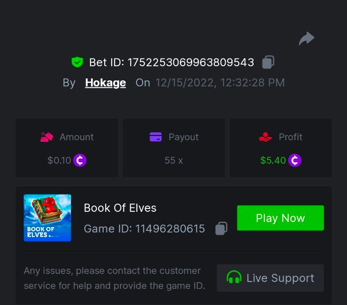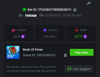 Book of Elves - 278.99x https://bc.game/#/sd/10ZW5ZYES0LGK3 Book of Xmas - 40.00x https://bc.game/#/sd/10ZWB4K9F62Y37 Wild Santa II - 36.00x https://bc.game/#/sd/10ZWBLXSP60MC3 Santa's Wild Night - 12.00x https://bc.game/#/sd/10ZWA1AREBUYVN -