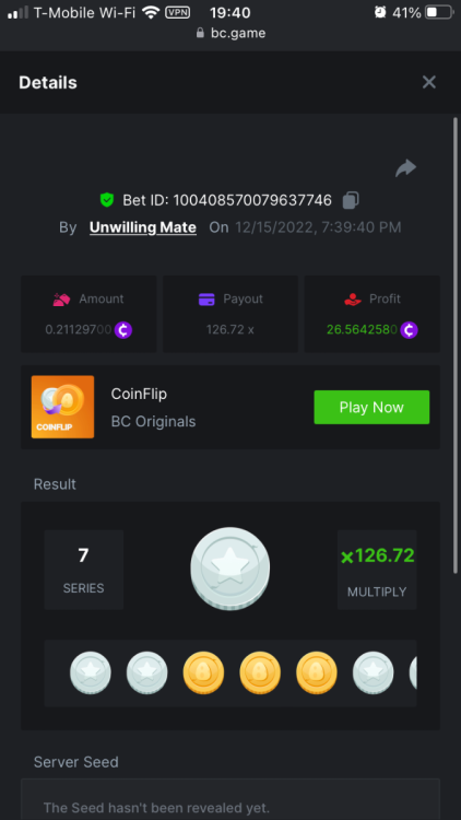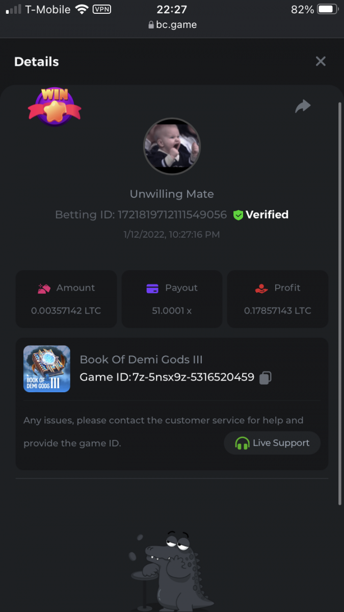 UnwillingNate replied to BCGame_Maxim's topic in VIP Challenges