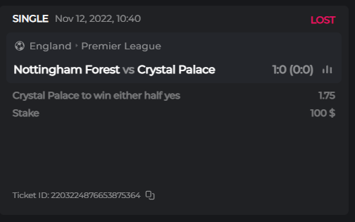 soccer | Nottingham Forest x Crystal Palace - Nov 12 | 15:00 UTC