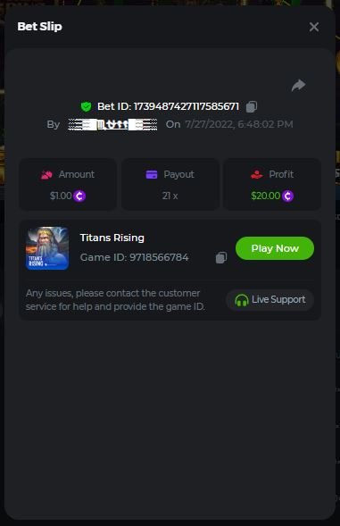 8. Ancient Fortunes Poseidon https://bc.game/sd/?sd=10Q59LZZPPUKUR | 18.39x @ 0.10 Amazing Link Zeus https://bc.game/sd/?sd=10QF54JKORT6OJ | 89.9x @ 0.80 Break Away Deluxe https://bc.game/sd/?sd=10QF27GQ6IWB2R | 11.368x @ 0.38 Immortal Romance https://bc.game/sd/?sd=10QF2BDDT7Y58Z | 20x @ 0.30 Jungle Jim N the lost sphinx https://bc.game/sd/?sd=10QF42PQPO5YQB | 85.4x @ 0.60 Playboy Fortunes https://bc.game/sd/?sd=10QF1WDZSVDNGZ | 15x @ 0.20