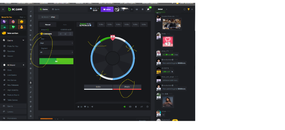 7. Website URL ( https://bc.game/wheel ) Device & System ( Windows 7 Desktop)(Samsung & Android 11) Feedback / Live bug / User experience. ( 1) The Wheel game shows the same 10x on low image for the wheel, no matter which multiply setting you place it on, so when spinning on hard for 20x you cannot see when it will land. 2) If claiming rakeback when in game, the balance at times does not refresh so the browser must be refreshed. ) Journey ( Safari web browser open the page will show 404 error, same goes to macOS ) Screenshot ( Not mandatory to provide, but it's better if we have your visual ) 1) The Wheel game shows the same 10x on low image for the wheel, no matter which multiply setting you place it on, so when spinning on hard for 20x you cannot see when it will land. 2) If claiming rakeback when in game, the balance at times does not refresh so the browser must be refreshed.