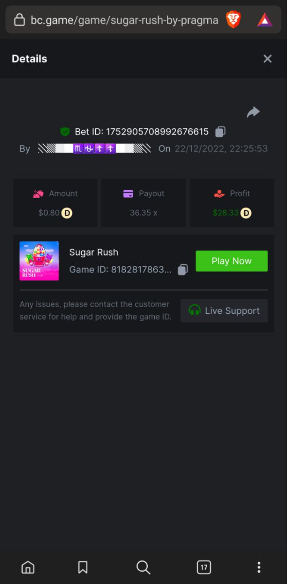 11. https://bc.game/sd/?sd=10O4VCFM0M6LUB 165.5x @ $0.40c USD