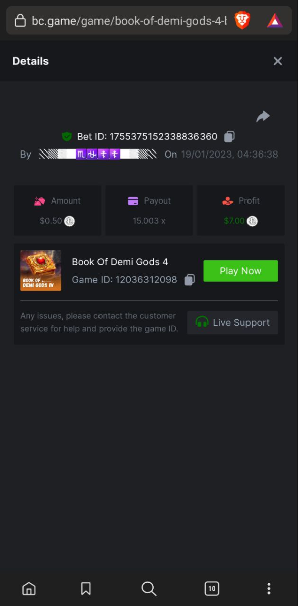 4. Super Joker 24.0375x @ $0.06 https://bc.game/#/sd/110AD5IRRHCQHF Bigger Bass Blizzard - Christmas Catch 50.020x @ $0.23 BOUNTY MULTIPLIER https://bc.game/#/sd/110ADW89D1CXLF Fury of Odin Megaway's 45.778x @ $0.25 https://bc.game/#/sd/110AEJWNS0IG43 Hot Pepper 100.05x @ $0.20 https://bc.game/#/sd/110AGM60GCZQ4Z Gates of Olympus 25.8x @ $0.40 https://bc.game/#/sd/110CSQ6V3XDNO3