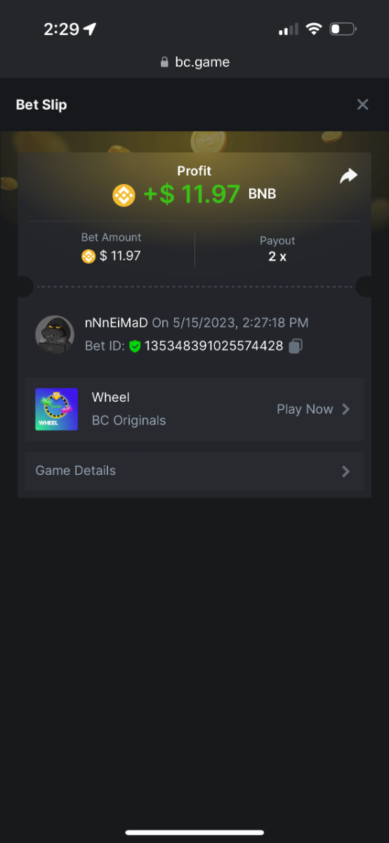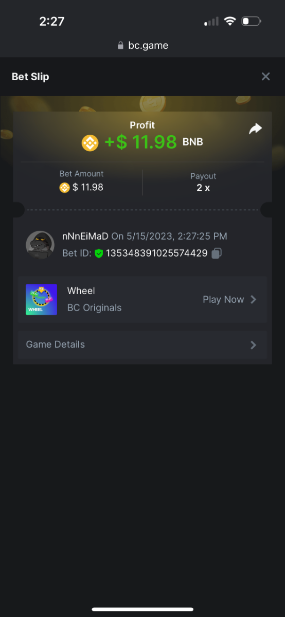 12. Wheel challenge https://bc.game/#/sd/119POAQ9HXCFF7 2x orange bet $11.98 https://bc.game/#/sd/119POD2A3NS36B 2x orange bet $11.98 https://bc.game/#/sd/119POE63WQ4YKZ 2x orange bet $11.98