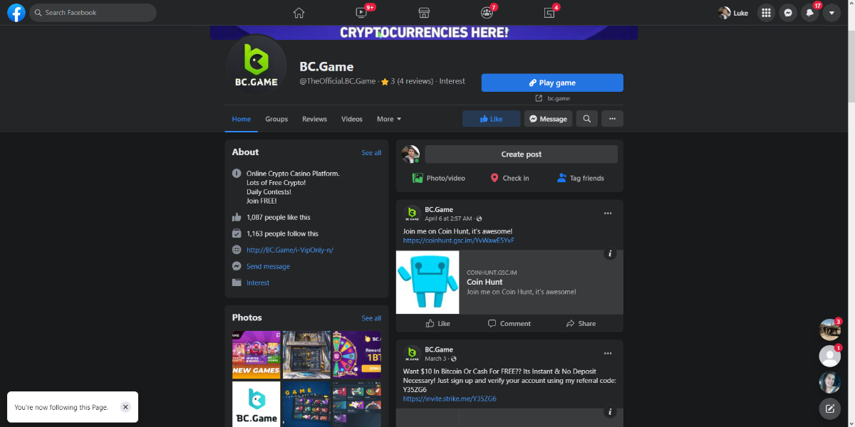 EASY: 1. Follow Instagram: whiteazn92 2. Post Photo/Video Tag BC.game: whiteazn92 https://www.instagram.com/p/CcUctBSu5Om/?utm_source=ig_web_copy_link 3. Follow BC on Twitter: Franky2XXer 4. Like and Retweet latest BC post: Franky2XXer 5. Follow BC Facebook page: Luke Hall 6. Cave of Plunder 7.50x: 7. 8. 20x multi Amatic Lady Fruits 100 Easter: 9. 30x Multi Gamomat Ramses Book Easter Egg: 10. Complete MEDIUM: 1. 10X Multi PlayNGo Easter Eggs: 2. Roulette Single Bet 0 (36X): 3. Get a 76x win on Plinko: 4. 60X Multi Wazdan Power of Gods Medusa Easter: 5. 6. 7. Keno Single 7, 8, 30 Medium Risk: 8. 90X Multi Big Time Gaming White Rabbit: 9. Black-Jack Only Red Cards: 10. HARD: 1. Wheel 49.5X: 2.PLINKO 420X: Bet ID#: 60146842272279722 3. Limbo 500X Multi: 4. 5. 6. 7. 8. 9. 10.