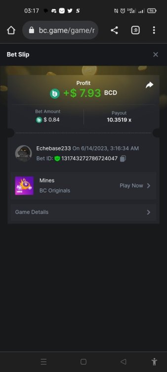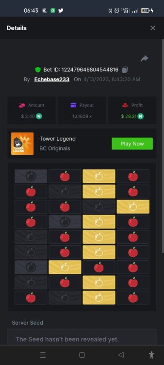 https://bc.game/#/sd/117H2E610NG5CJ The first one I posted I couldn't get the medium tower link. I didn't read the rules so I just did now and won this one. Again But busted though -