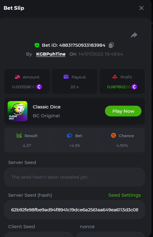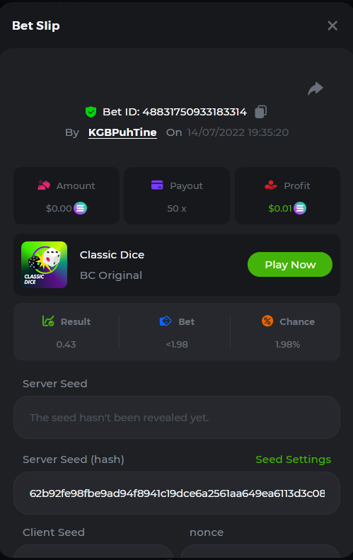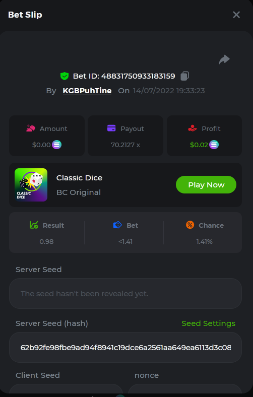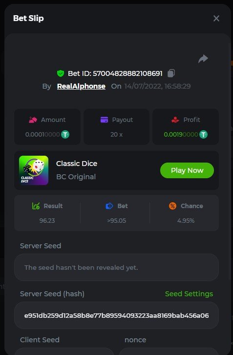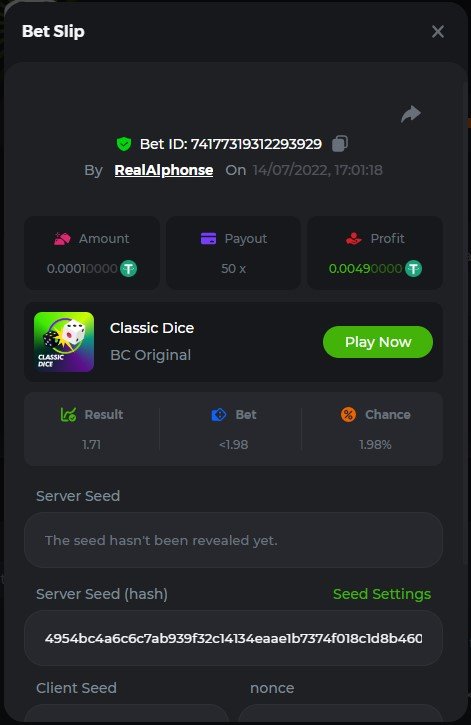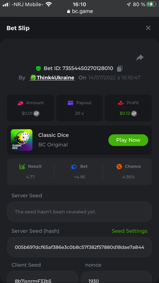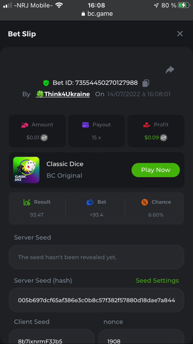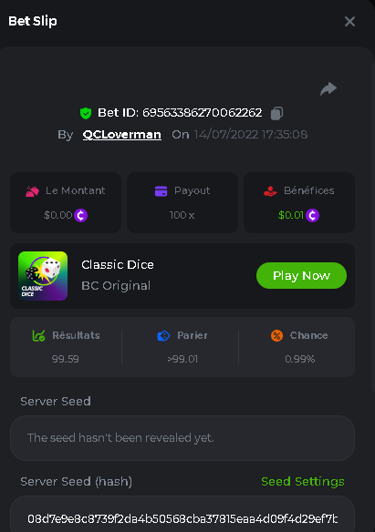 Member AkSyEn03 Posted July 14, 2022 Member Share Posted July 14, 2022 Challenge DICE Quoi de mieux pour finir la semaine qu'avec un challenge Dice classic de 48H ?Début 14/07/2022 a 16h fin le 16/07/2022 16h atteindre autant de multiplicateurs que possible dans la liste suivante... x7 X10 X13 X15 X20 X50 X70 X100 X130 X150 X200minimun pour etre qualifier> 3points Chaque pari correct comptera pour un point, les joueurs avec le plus de points seront les gagnants. si le nombre de joueurs augment le prix aussi !! Récompenses1ère place... 10BCD 2ème place... 7BCD 3ème place... 4BCD Règles :Ne publiez pas d'anciens paris Vous devez gagner le pari Vous ne pouvez gagner qu'une seule place Si vous enfreignez l'une des règles, votre pari sera annulé. Vous ne pouvez pas enregistrer les paris pour la fin, dès qu'ils sont corrects, ils doivent les partager.conditions mise minimum > 0.0001$ et jb interdis Il n'y a pas de niveau minimum Être de la chambre Française Vous ne devez avoir qu'un seul commentaire. Si vous souhaitez ajouter plus de paris, modifiez simplement le commentaire et ajoutez-les. En cas d'égalité, le joueur qui devine le pari en premier gagne. Comment entrer Accédez au jeu pour sélectionner votre ID de pari, cliquez sur l'icône Partager (↷) puis sur Copier le lien. Revenez au fil de discussion, collez le lien dans le champ "Répondre à ce sujet..." Par exemple : https://bc.game/sd/?sd=10IKIK3BP5T4PF Dans le même message, téléchargez une capture d'écran de votre victoire en cliquant sur l'ID de jeu AVEC le mode AFFICHAGE EN USD ACTIVÉ (accessible en bas du menu déroulant de votre portefeuille en haut) et Soumettre une réponse. Prêt! De cette façon, nous pouvons nous assurer que votre pari répondait à l'exigence minimale au moment de le placer : ❤ bonne chance a tous❤ Link to comment Share on other sites More sharing options...