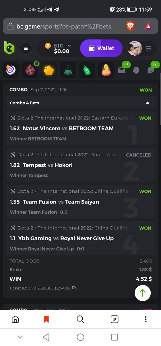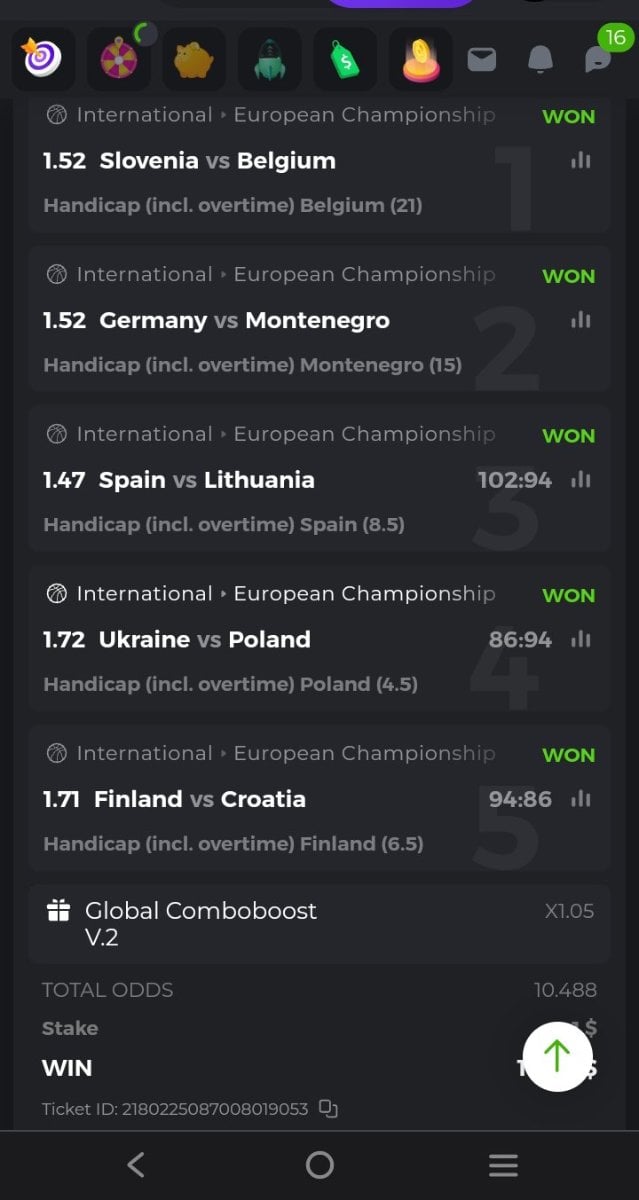 Moderator Mat Posted September 5, 2022 Moderator Share Posted September 5, 2022 $250 BC.GAME SPORTS PARLAYS CHALLENGES #20 Start: 05, Sep 16:00 UTC Ends: 11, Sep 23:59 UTC Hello, ladies and gentleman! Sports Parlay Challenges #20! With a prize pool of $250, the Top 7 takes home a grand prize, and the remaining $60 will be split among all other entrants! What is the challenge? Win a multi-bet with at least x4 by betting on at least 5 matches (all sports) All bet slips must be posted open! Any closed published bet slip will be disregarded! The ODDS for each game will be added up and counted as total points. Voided, half-loss, and half-win bets aren't eligible for the challenge! Cashed-out bets aren’t eligible for the challenge. Using the same odds on a single bet slip isn't allowed Providing the bet link isn’t mandatory Minimum VIP No Minimum VIP Level Minimum payment Multiplier minimum 4x, however, only the top 7 winning parlay multipliers will win the grand prize! Minimum bet size Equivalent to U$$1 Eligible currencies All cryptocurrencies are eligible (except JB) Rewards available 1st place.......$70 2nd place.....$50 3rd Place...... $30 4th Place...... $20 5th Place...... $10 6th Place...... $5 7th Place...... $5 The remaining $60 will be split among all other participants who meet the minimum requirements and minimum stake. How to enter: To participate, post your Ticket ID, along with your Parlay link, as a reply to this thread as follows: Link bet: https://bc.game/sports/?bt-path=%2F%3FbtBookingCode%3D561A9D1 + Ticket ID 2126602890796736992 Along with the screenshot of your accumulated ticket. Ticket ID 2126602890796736992 If a selection results in a void or push, the bet will remain eligible as long as it remains equal to or greater than a triple bet and meets the odds requirements. Bets withdrawn will not be counted. Please combine all your hits into a SINGLE post. Edit your existing post to get additional hits, don't create a new post. Bets must be placed during the time window specified above. This thread will automatically lock when the time period ends. One (1) entry per family. If someone finds multiple prizes, they will be disqualified from the challenge as well as all future challenges. Failure to follow the instructions will result in the cancellation of your submission. By entering this challenge, you acknowledge that BC.Game has final decision rights over results and placement. Link to comment Share on other sites More sharing options...