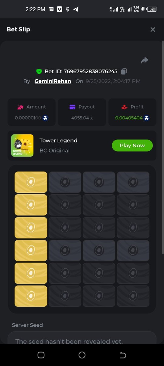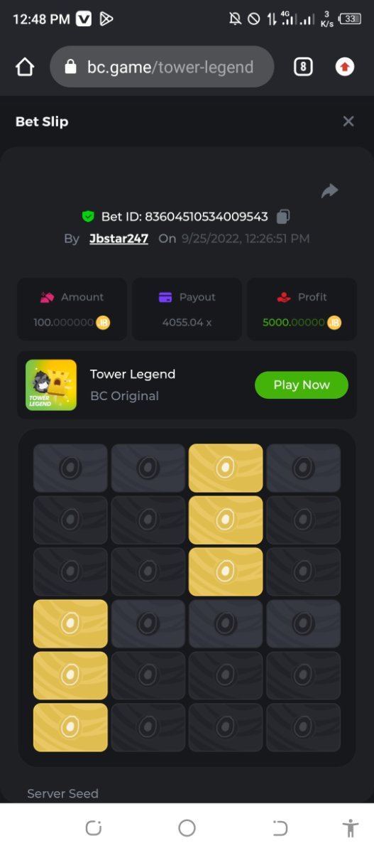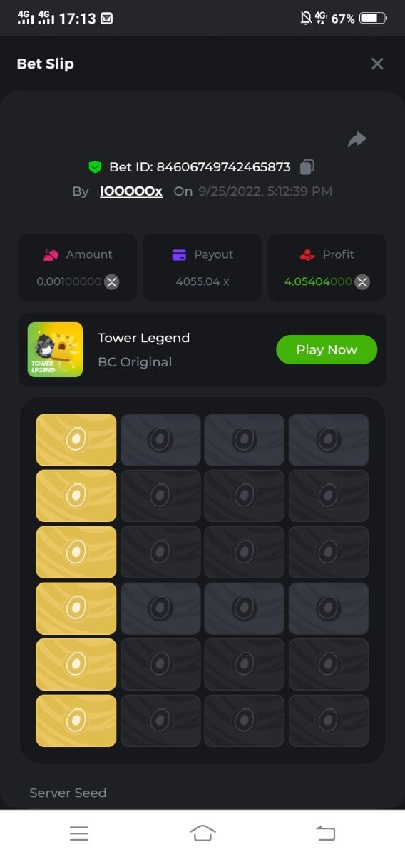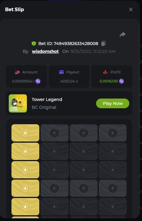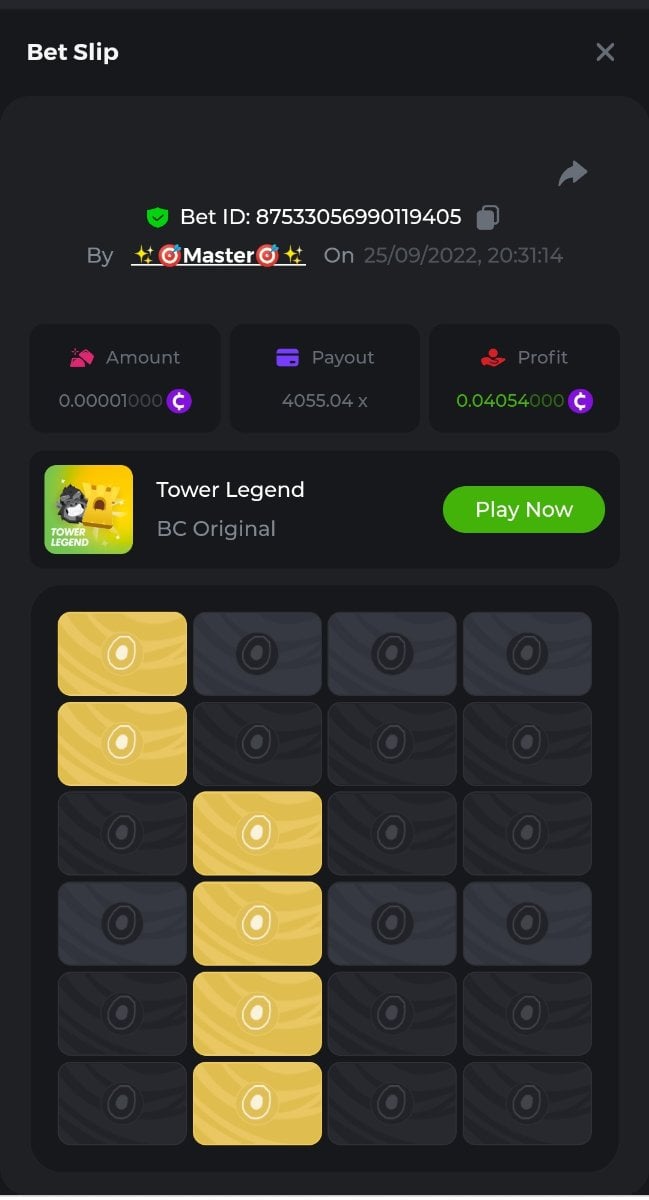 YESLLLLL Posted September 25, 2022 Share Posted September 25, 2022 (edited) 3 hours ago, Black Tiger said: Read Carefully Before Start To Hunt Daily Challenges #25 : Tower Legend Hunt :Win the highest pay outMin Payout requirement 100xMin Level 4️Duration Starting : Now End time : 23.59 UTC Time How to Join? Only Post on BC.Game Telegram Official HEREMake screenshot + paste your bet link + UID or Profile link To get bet link can check HERE Any coin allowedReward Prizes 1st Place....... $7 BCD2nd Place..... $5 BCD3rd Place...... $4 BCD 🎖4th Place......$3 BCD5th Place......$2 BCD 🏵 Winners will be announcing next day after Roll Point ========================== On Going Event $4,000 Top Tier Gameart Multiplier Battle! $2,500 Prestige Savior Sword Challenge #47 Soccer Top 5 league 100% cashback !#2$250 BC.GAME SPORTS PARLAYS CHALLENGES #22$500,000 Spinomenal's Grand Holiday Tournament TOUCHDOWN! NFL 50% Cashback ! #2 https://bc.game/sd/?sd=10TPHINK1PARDF Telegram user name : @Hwar5555 Edited September 25, 2022 by Jbstar247 Link to comment Share on other sites More sharing options...