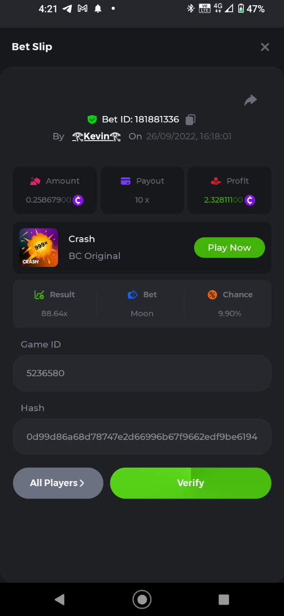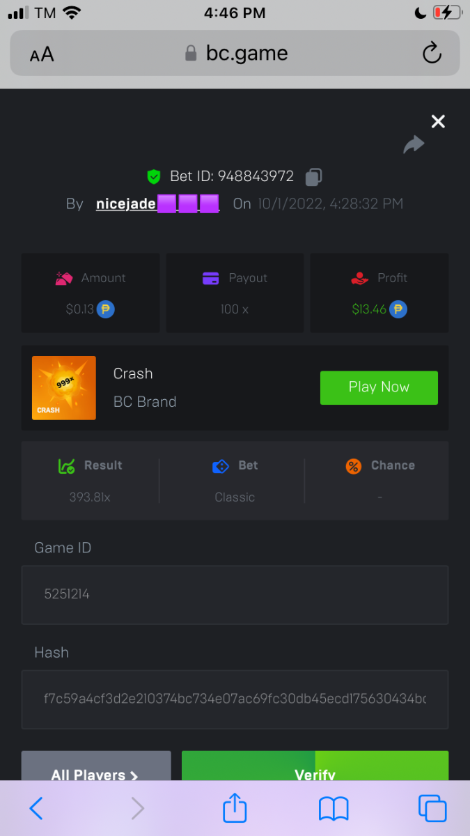 bassabar Posted September 26, 2022 Share Posted September 26, 2022 (edited) Multiplier: 51x https://bc.game/#/sd/?sd=10TVSLD6NSX443 Edited October 1, 2022 by bassabar Link to comment Share on other sites More sharing options...