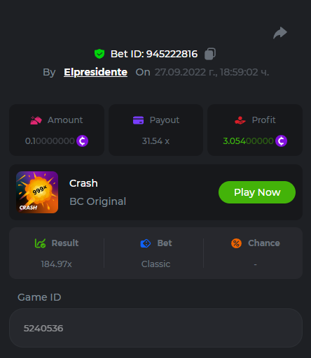 Maksypro Posted September 25, 2022 Share Posted September 25, 2022 (edited) ️ Weekly Crash Challenge ️ Starts: 25, September Ends: 02, October Hello VIPs! This week's challenge game is Crash. Trust your instincts! – more details below. What's the Challenge? Win the highest multiplier you can on BC.Game in-house Crash. In the case of a tied multiplier, the player with a higher bet amount will be given the advantage. If there is a tie in the amount and payout, the one who posted or edited his post first will be considered in the Ranking. Minimum VIP There's no minimum VIP level Minimum Payouts Minimum payout to qualify is 10x Minimum Bet Size $0.10 USD equivalent Eligible Coins All cryptocurrencies are eligible (excepting JB, and BCL) Available Prizes 1st...................... 20 BCD 2nd.................... 15 BCD 3rd..................... 10 BCD 🎖4th + 5th........... 2.50 BCD Bounty 10$ for 1 winner who have highest payout. How to Enter To enter, copy the link of the bet you'd like to submit. Once you've copied it, paste it as a reply to this thread like so: Link: https://bc.game/sd/?sd=10TQ4UCSW1B6DV In the same post, upload a screenshot of your win by clicking the game ID WITH VIEW IN USD mode ENABLED (accessible at the bottom of dropdown menu for your wallet up top. This way, we can ensure that your bet indeed met the minimum requirement at the time of placing it: Link: https://bc.game/sd/?sd=10TQ4UCSW1B6DV Please combine all of your hits together in a SINGLE post. Edit your existing post for additional hits, don't create a new post. Bets must be posted within 24 hours of placing bet in order to keep things fair for everyone. Bets must be made during the specified time window stated above. This thread will lock automatically when the time period is over. One (1) entry per household. Anyone found attempting to win multiple prizes will be disqualified from this challenge as well as all future challenges. Failure to follow instructions will result in your submission being null and void. By entering this challenge, you acknowledge that BC.Game has the final decision on results and placement. Payouts will be made within 72 hours of challenge completion, please be patient, we promise you that we haven't forgotten. We check and double check to make sure the rightful winners receive their prize. Prizes will be paid out in BCD. Good luck and have Fun Edited September 25, 2022 by Maksypro 4 Link to comment Share on other sites More sharing options...