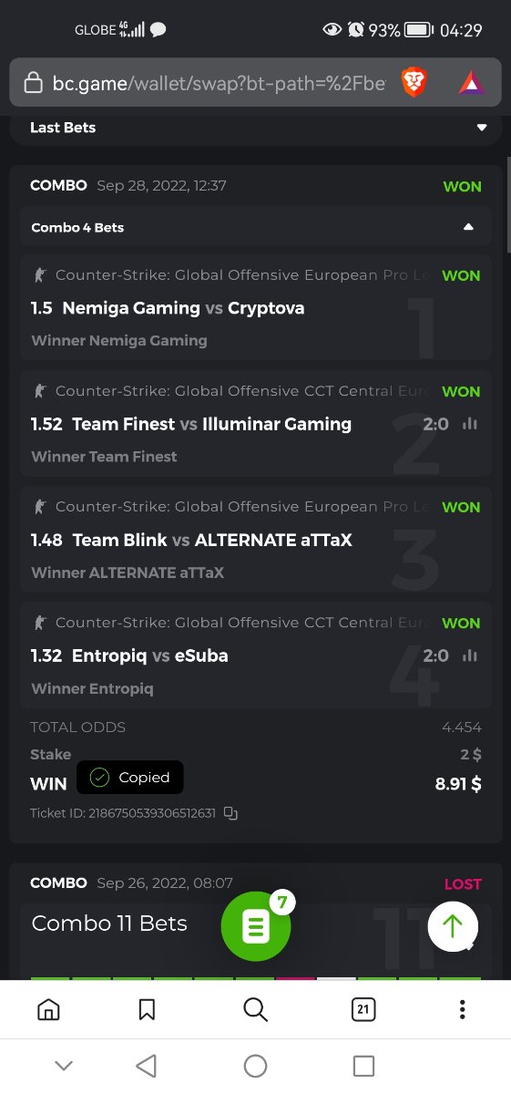 Moderator Mat Posted September 25, 2022 Moderator Share Posted September 25, 2022 $250 BC.GAME SPORTS PARLAYS CHALLENGES #23 Start: 26, Sep 00:00 UTC Ends: 02, Oct 23:59 UTC Hello, ladies and gentleman! Sports Parlay Challenges #23! With a prize pool of $250, the Top 7 takes home a grand prize, and the remaining $60 will be split among all other entrants! What is the challenge? Win a multi-bet with at least x4 by betting on at least 4 matches (all sports) All bet slips must be posted open! Any closed published bet slip will be disregarded! The ODDS for each game will be added up and counted as total points. Voided, half-loss, and half-win bets aren't eligible for the challenge! Cashed-out bets aren’t eligible for the challenge. Using the same odds on a single bet slip isn't allowed Providing the bet link isn’t mandatory Minimum VIP No Minimum VIP Level Minimum payment Multiplier minimum 4x, however, only the top 7 winning parlay multipliers will win the grand prize! Minimum bet size Equivalent to U$$1 Eligible currencies All cryptocurrencies are eligible (except JB) Rewards available 1st place.......$70 2nd place.....$50 3rd Place...... $30 4th Place...... $20 5th Place...... $10 6th Place...... $5 7th Place...... $5 The remaining $60 will be split among all other participants who meet the minimum requirements and minimum stake. How to enter: To participate, post your Ticket ID, along with your Parlay link, as a reply to this thread as follows: Link bet: https://bc.game/sports/?bt-path=%2F%3FbtBookingCode%3D561A9D1 + Ticket ID 2126602890796736992 Along with the screenshot of your accumulated ticket. See how to get your sports bet link below! https://imgur.com/a/BRSyxVE Ticket ID 2126602890796736992 If a selection results in a void or push, the bet will remain eligible as long as it remains equal to or greater than a triple bet and meets the odds requirements. Bets withdrawn will not be counted. Please combine all your hits into a SINGLE post. Edit your existing post to get additional hits, don't create a new post. Bets must be placed during the time window specified above. This thread will automatically lock when the time period ends. One (1) entry per family. If someone finds multiple prizes, they will be disqualified from the challenge as well as all future challenges. Failure to follow the instructions will result in the cancellation of your submission. By entering this challenge, you acknowledge that BC.Game has final decision rights over results and placement. Link to comment Share on other sites More sharing options...