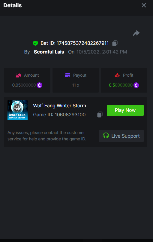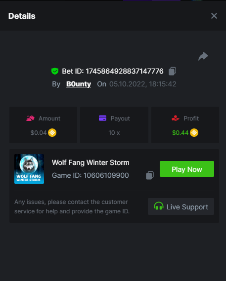 Event Team Niobium Posted October 5, 2022 Event Team Share Posted October 5, 2022 Starts: 5, October 12:00pm GMTEnds: 12, October 12:00pm GMT Hey Hey VIPs! It is a privilege to be back on this week with a captivating competition in Spinomenal. We are giving away a prize pool of $4,000, and it is easy to participate. All you have to do is hit the highest multiplier in the six games listed below, and each multiplier will be summed together to rank. Furthermore, any participant who completes the side bounty will receive an equal share of 10% of the prize pool. The battle is running from today (October 5 at 12:00 PM GMT until October 12 at 12:00 PM GMT ─ (More details below). Eligible Games Win the highest multiplier on the Spinomenal games listed below Queen of Ice Hut With Chicken Leg Demi Gods IV Wacky Monkey Book of BC.GAME Wolf Fang - Winter Storm The highest multiplier reached in each game will be added together and counted as total points. Bonus buys are allowed. If the player submits multiple winning entries for the same game, the entry with the highest multiplier will be valid. Minimum VIP Tier Must be VIP04 or higher in order to enter this event. Minimum Payout Minimum payout to qualify is 10x (in any game) for a valid entry. Minimum Bet Size Queen of Ice - $0.25 Hut With Chicken Leg - $0.10 Demi Gods IV - $0.50 Wacky Monkey - $0.30 Book of Bcgame - $0.10 Wolf Fang - Winter Storm - $0.05 Eligible Coins All cryptocurrencies are eligible (excepting JB, and BCL). Free Play Mode is not valid for this event. Prize Pool & Reward Breakdown The winners will win a share of the prize pool based on the detailed ranking below. Anyone who completes the side bounty will receive a share of a 10% of the prize pool. BOUNTY - Share a bet that shows exactly 50x payout on any of the six games within the timeframe of this event and you will receive a share of 10% of the prize pool! If nobody wins exactly the payout, the player/s closest to the payout will win this bounty! Original rules apply with a minimum bet, minimum payout & VIP. How to Enter Access the game to select your Bet ID, click on the Share icon (↷) and then Copy link. Return to the topic, paste the link in the field "Reply to this topic..." E.g.: https://bc.game/#/sd/10UEUG1CRO54PF Each eligible entry must have the Bet Slip URL, the non-inclusion of the link will disqualify participation in the event. In the same post, upload a screenshot of your win by clicking the game ID WITH VIEW IN USD mode ENABLED (accessible at the bottom of dropdown menu for your wallet up top, and Submit Reply. Done! This way, we can ensure that your bet indeed met the minimum requirement at the time of placing it: Example post - Link: https://bc.game/#/sd/10UEUG1CRO54PF Good luck everyone! Link to comment Share on other sites More sharing options...