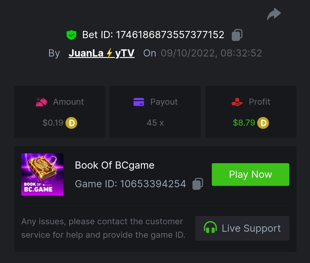 bounty:  BOOK OF BC (50.5X)- https://bc.game/#/sd/10UK3O8UXRT6OJ1165966793_bookofbc.PNG.91b9ee89d909f034880031c4c3c6598d.PNG