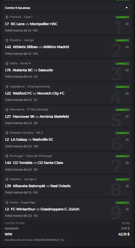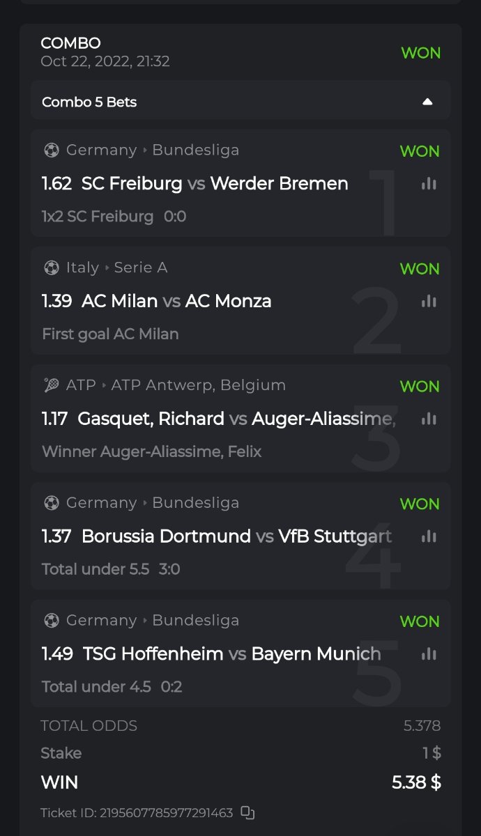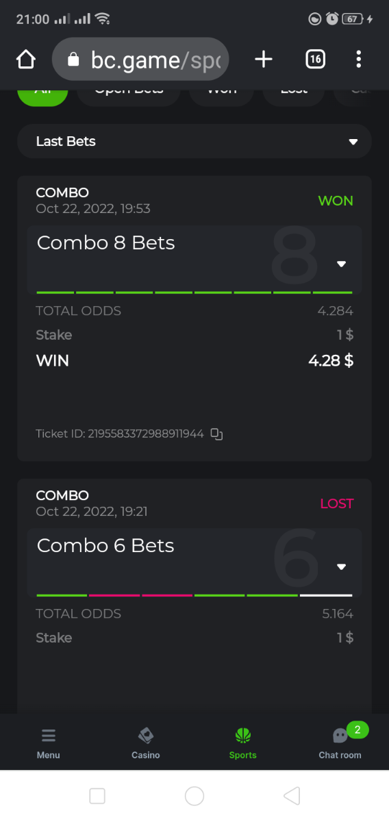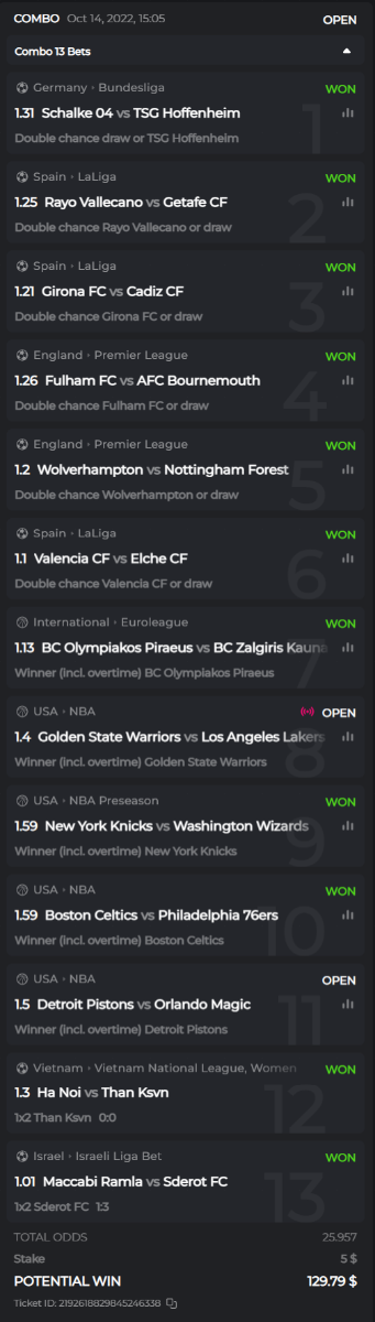 Zinzunzan Posted October 19, 2022 Share Posted October 19, 2022 The most recent parlay i won. I couldn't get the betslip link but here is the ticket ID and screenshot. Goodluck everyone !!! Ticket ID : 2193186155258851377 Link to comment Share on other sites More sharing options...