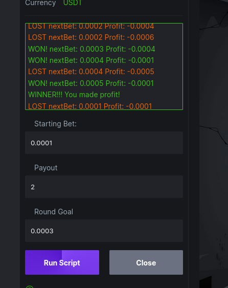 log.success('WON! nextBet: '+currentBet.toFixed(tFormat)+' Profit: '+roundProfit.toFixed(tFormat));