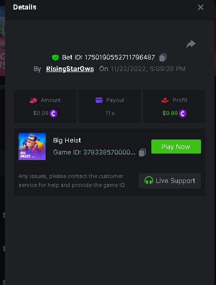 Chebster Posted November 22, 2022 Share Posted November 22, 2022 (edited) Candy boom https://bc.game/#/sd/10XPGSBZ1BN5EB Chili https://bc.game/#/sd/10XPH22GHZNJTF Heist https://bc.game/#/sd/10XPHF1HOW0YKZ Sun https://bc.game/#/sd/10XPHW4SGEHC7N Edited November 22, 2022 by Chebster Link to comment Share on other sites More sharing options...