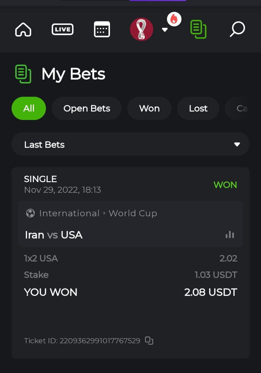 Tato_123 Posted November 28, 2022 Share Posted November 28, 2022 (edited) InternationalWorld Cup Iran vs USA 29/nov 19:00 utc event: https://hash.game/sports?bt-path=%2F1%2F1669818805871841280%2F1670073988614852608%2F2184065463582068749 We challenge you to bet on this match! Challenge: Which team will win the match? All bets on this event are validone bet allowed Betting slips must be posted open! Before the general fix at the end of the game.The bet slip must be published before the start of the match.Edited posts will not be considered The minimum bet size is: $1 The highest base bet, with the correct bet (the winning team) will win it prize 1.........12BCD 2nd...... 8BCD 3rd.......5BCD Choose your result and get the reward Edited November 28, 2022 by BCGame_Tato_123 Link to comment Share on other sites More sharing options...