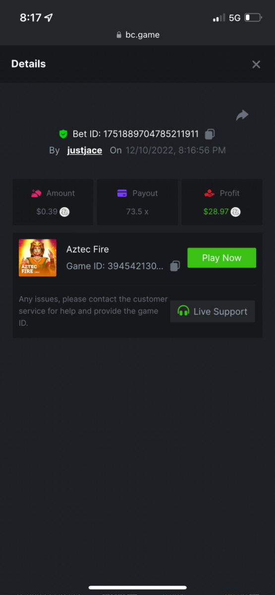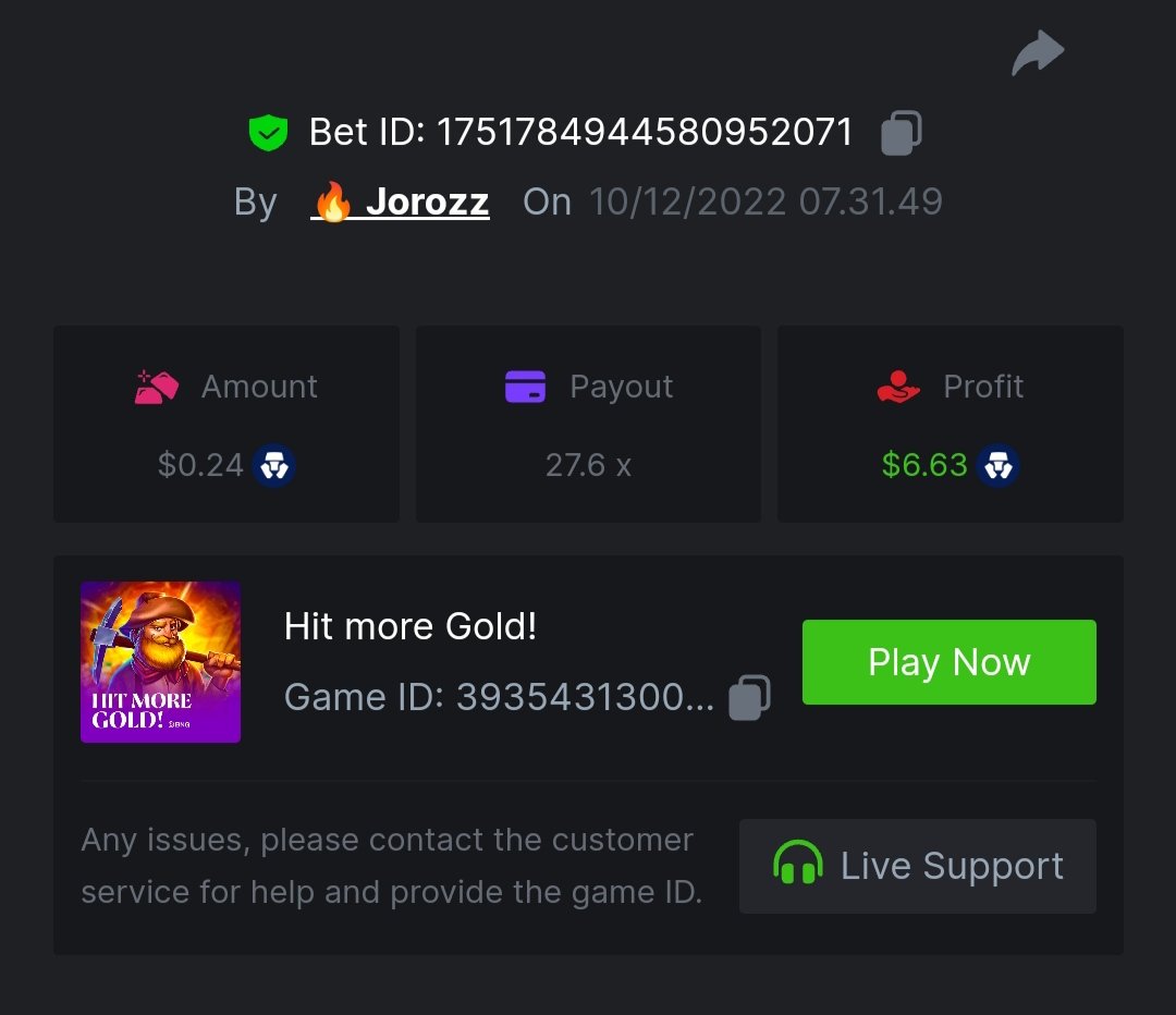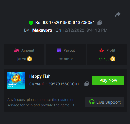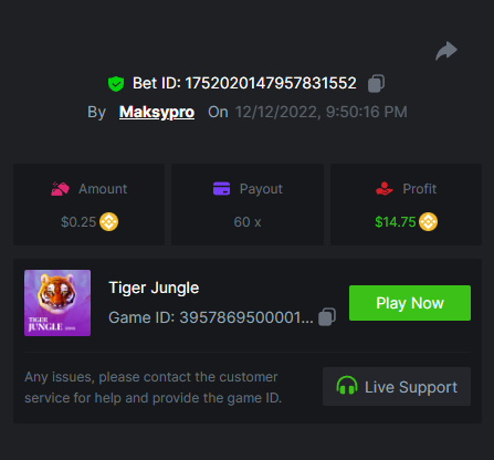 bassabar Posted December 10, 2022 Share Posted December 10, 2022 (edited) Total multiplier: 419.8012x Green Chilli Multiplier: 79.5x https://bc.game/#/sd/10YYV7WL2R5NO3 Tiger Jungle Multiplier: 97x https://bc.game/#/sd/10YYULGPXLDZPV Aztec Fire Multiplier: 90.5x https://bc.game/#/sd/10YYUZBNUUK9AR Happy Fish Multiplier: 90.0012x https://bc.game/#/sd/10Z0ZRPM5L5JBN Hit more Gold! Multiplier: 62.8x https://bc.game/#/sd/10YYTT5M6X4PAR Edited December 11, 2022 by bassabar 1 Link to comment Share on other sites More sharing options...