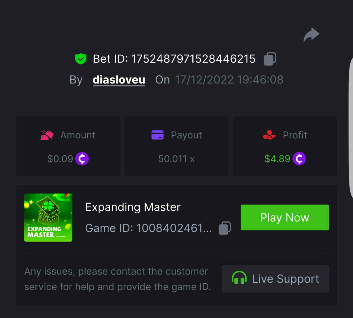 25.5 x https://bc.game/#/sd/10ZG5LEZ70KOWJ