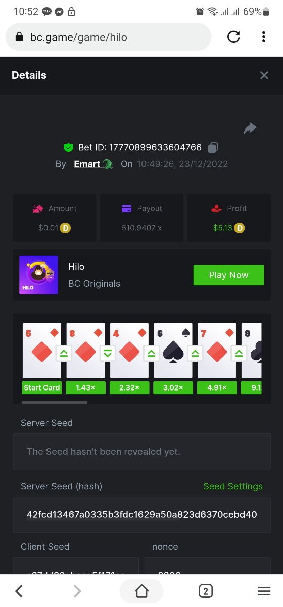 Black Tiger Posted December 23, 2022 Share Posted December 23, 2022 Read Carefully Before Start To Hunt Daily Challenges #108 : HILOHunt :Win the highest pay outMin Payout requirement 100xMin Level 4️Duration Starting : Now End time : 23.59 UTC Time How to Join? Make screenshot + paste your bet link + UID or Profile link Mini bet amount - 0.01$ Any coin allowedReward Prizes 1st Place....... $7 BCD2nd Place..... $5 BCD3rd Place...... $4 BCD 🎖4th Place......$3 BCD5th - 10th Place......$1 BCD 🏵 Winners will be announcing next day after Roll Point 2 Link to comment Share on other sites More sharing options...