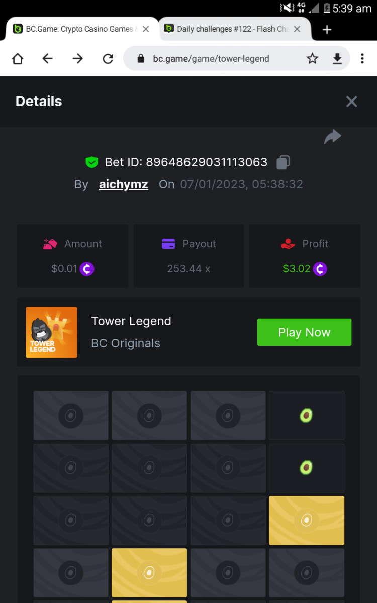 Black Tiger Posted January 6, 2023 Share Posted January 6, 2023 Read Carefully Before Start To Hunt Daily Challenges #122 : Tower Legend Hunt :Win the highest pay outMin Payout requirement 100xMin Level 4️Duration Starting : Now End time : 23.59 UTC Time How to Join? Make screenshot + paste your bet link + UID or Profile link Mini bet amount - 0.01$ Any coin allowedReward Prizes 1st Place....... $7 BCD2nd Place..... $5 BCD3rd Place...... $4 BCD 🎖4th Place......$3 BCD5th - 10th Place......$1 BCD 🏵 Winners will be announcing next day after Roll Point 1 Link to comment Share on other sites More sharing options...