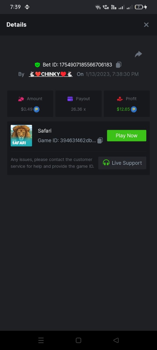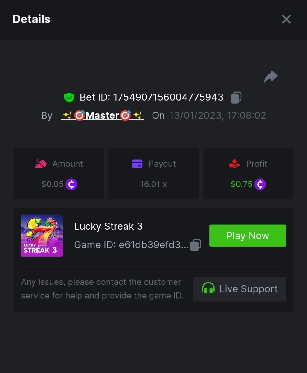 • In the same post, upload a screenshot of your win by clicking the game ID WITH VIEW IN USD mode ENABLED (accessible at the bottom of dropdown menu for your wallet up top, and Submit Reply. Done! This way, we can ensure that your bet indeed met the minimum requirement at the time of placing it: