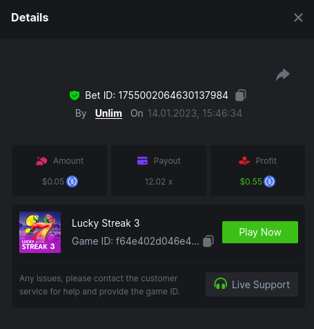 MeninaDtrap Posted January 14, 2023 Share Posted January 14, 2023 Lucky streak 3. https://hash.game/#/sd/111D9M6QMW69LF 150.30x $0.20 bet Machine 40 https://hash.game/#/sd/111DA3ADU08WLV 50x $0.40 bet Safari https://hash.game/#/sd/111EHI8CKWTNV7 611.92x $0.50 bet twerk https://hash.game/#/sd/111GK0MCCOOB9V 95.59x $0.20 bet chance machine 20 https://hash.game/#/sd/111IZXZUUSAAZ7 42.01x $0.40 bet Link to comment Share on other sites More sharing options...