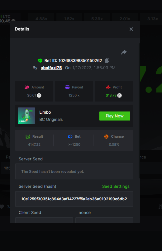 deenniiss_game Posted January 17, 2023 Share Posted January 17, 2023 21 hours ago, Black Tiger said: Read Carefully Before Start To Hunt Daily Challenges #133 : LIMBOHunt :Win the highest pay outMin Payout requirement 100xMin Level 4️Duration Starting : Now End time : 23.59 UTC Time How to Join? Make screenshot + paste your bet link + UID or Profile link Mini bet amount- 0.01$ Any coin allowedReward Prizes 1st Place....... $7 BCD2nd Place..... $5 BCD3rd Place...... $4 BCD 🎖4th Place......$3 BCD5th - 10th Place......$1 BCD 🏵 Winners will be announcing next day after Roll Point https://prnt.sc/mIysuRI2B18G https://bc.game/#/sd/111LRY93VIYEC3 User Id: 1255531 deenniiss Link to comment Share on other sites More sharing options...