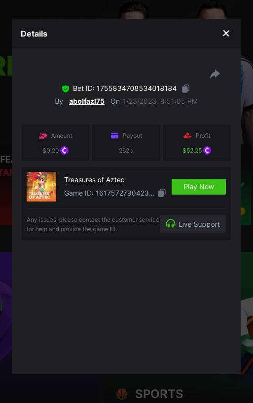 ToughLuck Posted January 23, 2023 Share Posted January 23, 2023 Treasures Of Aztec 17.45 x https://bc.game/#/sd/11201378T68RGZ Lucky Piggy 16 x https://bc.game/#/sd/1122B462K99C7N The Great Icescape 43.76 x https://bc.game/#/sd/1123SGMQOSI6MR Link to comment Share on other sites More sharing options...