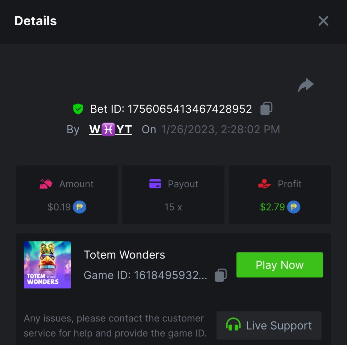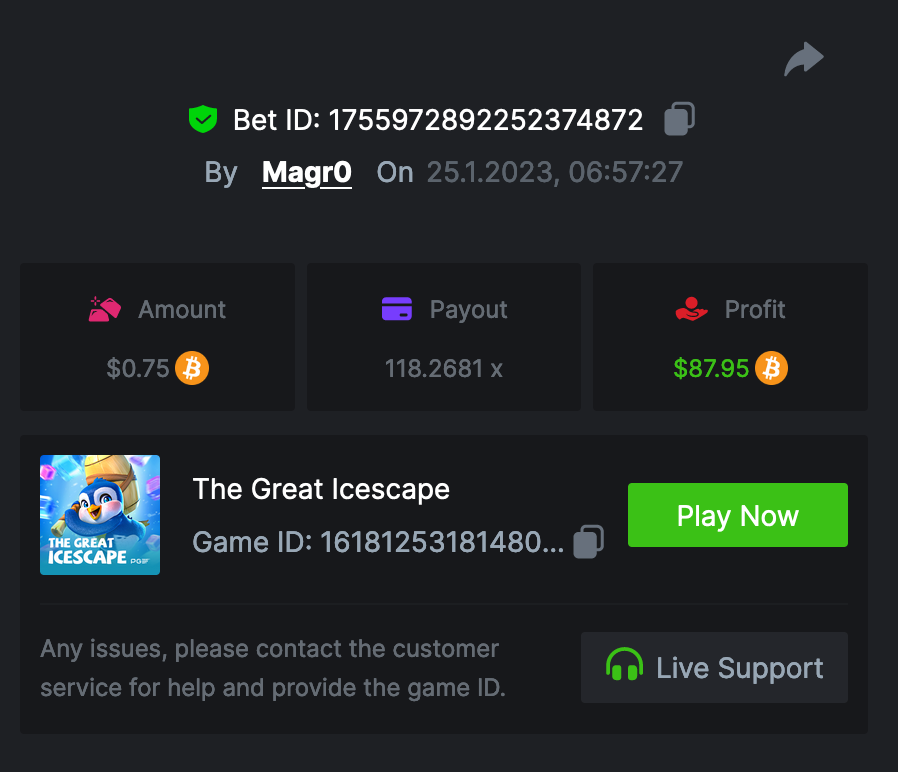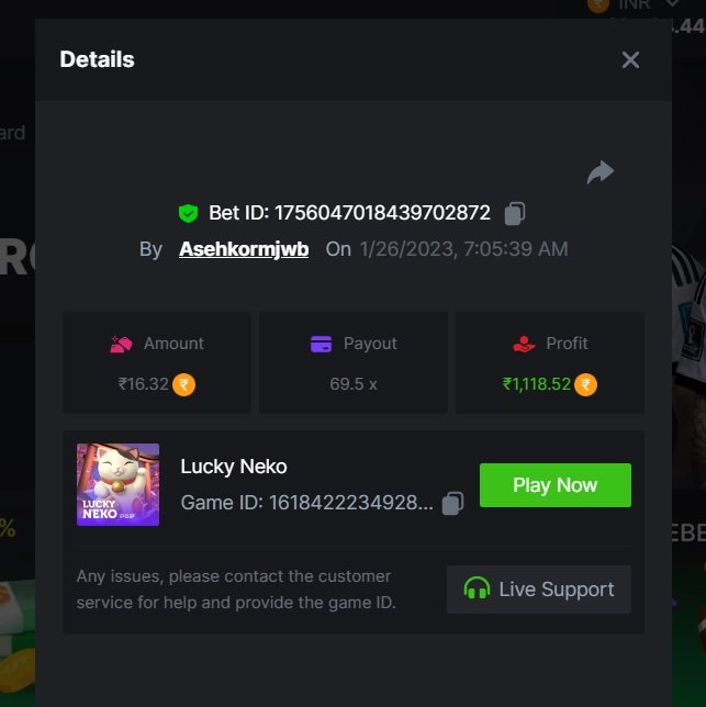 Saaho2022 Posted January 26, 2023 Share Posted January 26, 2023 Lucky Neko - 37.6 https://bc.game/#/sd/1126HZ19MK6FBN Totem Wonders - 10.5x https://bc.game/#/sd/1126FWS416F5ZN The Great Icescape - 54.16xhttps://bc.game/#/sd/1126GA83SGYFBN Lucky Piggy - 144.25 https://bc.game/#/sd/1126KBZZYMH2XF Treasures of Aztec - https://bc.game/#/sd/1126LMA9DJPRMB Link to comment Share on other sites More sharing options...