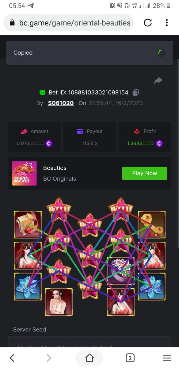 Maksypro Posted February 16, 2023 Share Posted February 16, 2023 (edited) Read Carefully Before Start To Hunt Daily Challenges #149 ORIENTAL BEAUTIES Hunt : Win the highest pay out Min Payout requirement 50x Min Level 4 ๏ธDuration Starting : Now End time : 23.59 UTC Time How to Join? Make screenshot + paste your bet link + UID or Profile link Mini bet amount - 0.01$ Any coin allowed Reward Prizes 1st Place.....$7 BCD 2nd Place.....$5 BCD 3rd Place.....$4 BCD 4th Place.....$3 BCD 5th Place.....$2 BCD ๐ต Winners will be announcing next day after Roll Point! Edited February 16, 2023 by Maksypro Link to comment Share on other sites More sharing options...