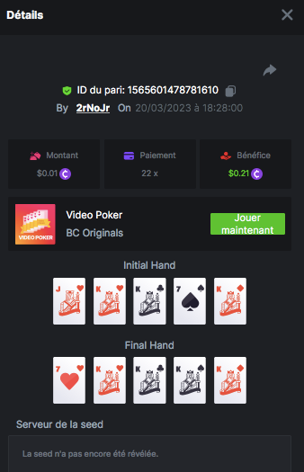 Member AkSyEn03 Posted March 21, 2023 Author Member Share Posted March 21, 2023 (edited) CHALLENGE WEEK VIDEO POKER 1.Zappa 14 BCD 2.2rNoJr 8 BCD 3.Alphonse 4BCD 4.QC-Guyguy75 2 BCD 5.Limbowhore 2 BCD Félicitation à tous   Edited March 21, 2023 by Bc-AksYeN-33 Link to comment Share on other sites More sharing options...