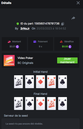 Member AkSyEn03 Posted March 19, 2023 Member Share Posted March 19, 2023 (edited) đ”ĂVĂNEMENTS DU WEEK-ENDđ”J'autorise tous les participants FR !!DĂFI Heure de dĂ©but : 19/03/2023 à 20h00. Heure de fin : 20h le 20/03/2023 week defi n'est ce pas merveilleux ^^ Quel est le dĂ©fi ? Jeu : VIDEO POKERAtteindre le plus HAUT MUTLIPLICATEUR  et une cumulation de x dans le jeu VIDEO POKER Minimum pour la qualification est de 3 Multi SI Ă©galitĂ© sur un multiplicateur , le filtre sĂ©lectionnera en 2Ă©me la somme et sera prise en compte .VIP minimal > Il n'y a pas de niveau VIP minimum.Pari minimum : 0.0003$   Attention JB non pris en compte RĂ©compenses14$8$4$4eme place Ă 7 -Ăšme place 2$  sans respect des conditions aucun gains ne sera remis !AccĂ©dez au jeu pour choisir votre ID de pari, cliquez sur l'icĂŽne Partager (â·) puis sur Copier le lien Dans le mĂȘme message, tĂ©lĂ©chargez une capture d'Ă©cran de votre gain en cliquant sur l'ID du jeu et En mode USD ON1. N'utilisez pas plusieurs comptes 2. Les paris soumis avant ou aprĂšs la date et l'heure limite ne seront pas acceptĂ©s 4. tout manquement au conditions de bonus, vera son paris annulĂ©. alors lisez bien avant de commencer et BC Game vous souhaite des moments heureux et profitablesBonne chance, que le meilleurs gagne !! Edited March 19, 2023 by Bc-AksYeN-33 2 Link to comment Share on other sites More sharing options...