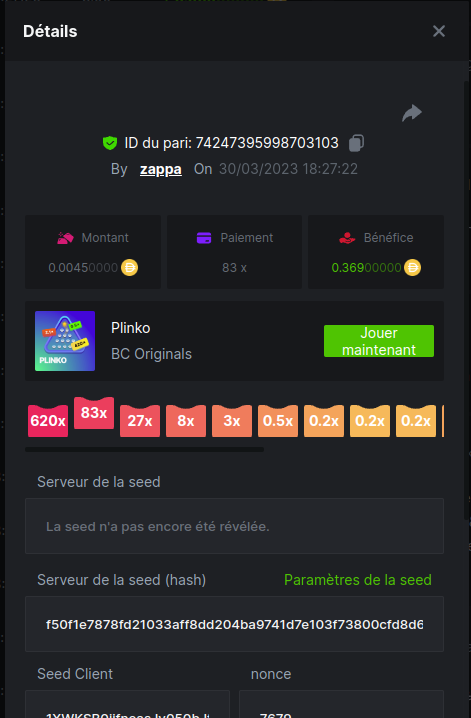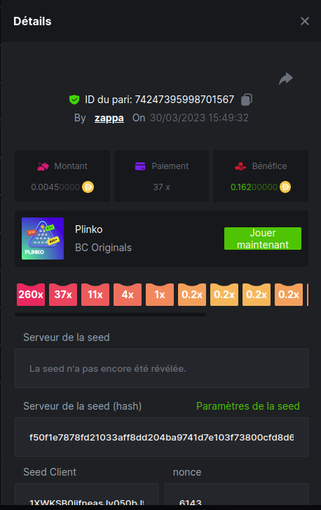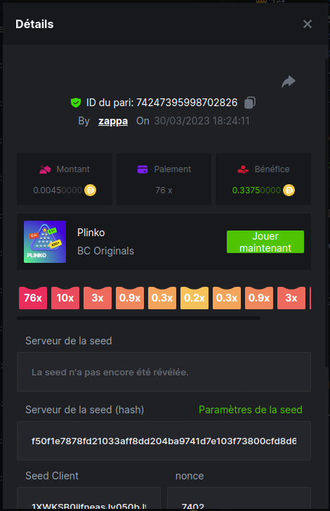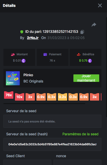 Complétez autant des 17 paiements suivants sur Plinko. Doit être un multiplicateur exact.
