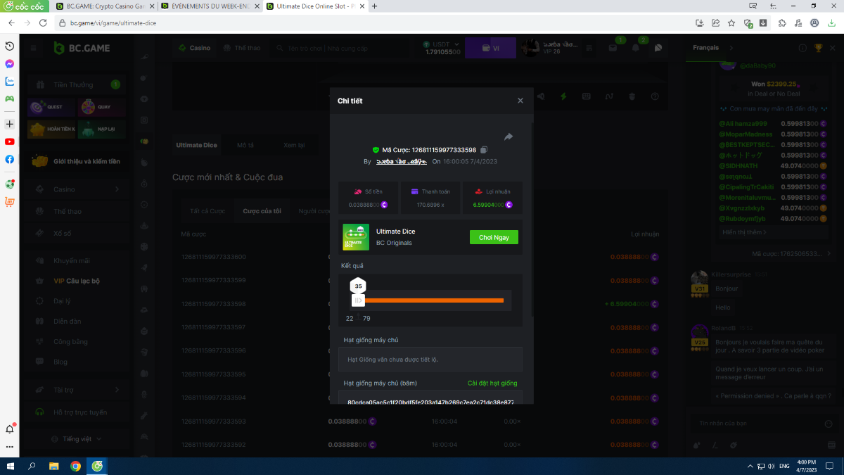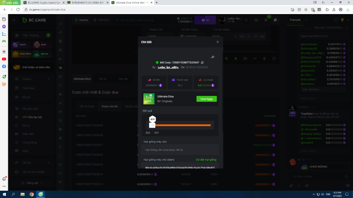 Member AkSyEn03 Posted April 7, 2023 Member Share Posted April 7, 2023 DÉFI MULTIPLICATEUR EXCLUSIF DE 48$ Début : 7 AVRIL 15h45 ️Fin : 10 avril 15h30 Cagnotte : 48 $ ️Qu'est-ce que le défi ? Complétez autant des 17 paiements suivants sur BC original ULTIMATE DICE (https://bc.game/fr/game/ultimate-dice). Doit être un multiplicateur exact ou très proche. 11x 12.9x 22x 29x 33x 36.94x 43x 55x 76x 83x 110x 119.27x 170.68x 260.52x 412.5x 618.75x 990x Chaque paiement que vous touchez ci-dessus compte pour 1 point (maximum 1 point pour chaque paiement). Prix disponibles 1er..............$15 2ème..........$10 3ème..........$5 4 à 13.........$2 Règles : Paiement minimum : 4 Points Niveau minimum : Non Mise minimum : 0,0033 USD équivalent Lisez les détails et les règle !!! Bonne chance à tous Conditions générales : Veuillez combiner tous vos résultats dans un SEUL message. Modifiez votre publication existante pour des résultats supplémentaires, ne créez pas de nouvelle publication. Chaque inscription éligible doit avoir l'URL du bordereau de pari. Si vous ne l'incluez pas, la participation à l'événement sera disqualifiée. L'image du bulletin de pari n'est pas obligatoire. Les paris doivent être publiés dans les 24 heures suivant le placement du pari afin que les choses restent équitables pour tout le monde. Les paris doivent être faits pendant la fenêtre de temps spécifiée ci-dessus. Ce fil se verrouillera automatiquement lorsque la période de temps sera terminée. Une (1) participation par foyer. Toute personne surprise en train de tenter de gagner plusieurs prix sera disqualifiée de ce défi ainsi que de tous les défis futurs. Le non-respect des instructions entraînera la nullité de votre soumission. En participant à ce défi, vous reconnaissez que BC.Game a la décision finale sur les résultats et le placement. Les paiements seront effectués dans les 72 heures suivant la fin du défi, soyez patient, nous vous promettons que nous n'avons pas oublié. Nous vérifions et revérifions pour nous assurer que les gagnants légitimes reçoivent leur prix. Les prix seront payés en BCD. BONNE CHANCE À TOUS Link to comment Share on other sites More sharing options...