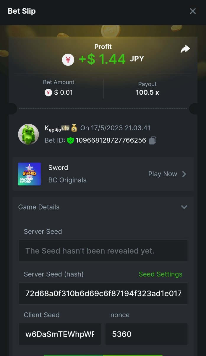 Maksypro Posted May 17, 2023 Share Posted May 17, 2023 Read Carefully Before Start To Hunt Daily Challenges #238 SWORD Hunt : Win the highest multiplier Min Multiplier requirement 50x Min Level 4 ๏ธDuration Starting : Now End time : 23.59 UTC Time How to Join? Make screenshot + paste your bet link + UID or Profile link Any coin, with min bet 0.01 USD is allowed (jb/bb/bcl not allowed) Reward Prizes 1st Place.....$7 BCD 2nd Place.....$5 BCD 3rd Place.....$4 BCD 4th Place.....$3 BCD 5th Place.....$2 BCD ๐ต Winners will be announcing next day after Roll Point! 3 Link to comment Share on other sites More sharing options...